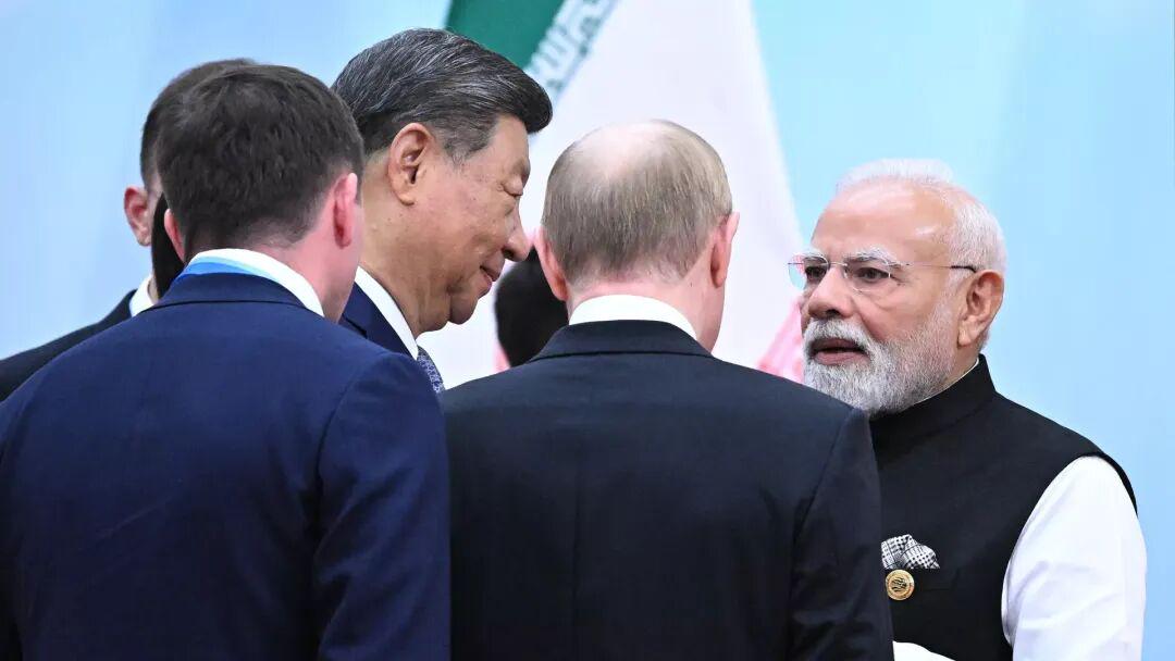 普京首先与莫迪进行了短暂交谈,两位领导人手牵手走向会议厅。随后,习近平加入了俄罗斯总统和印度总理的交谈。三位领导人情绪愉快大咖配资,在交谈中面带笑容。