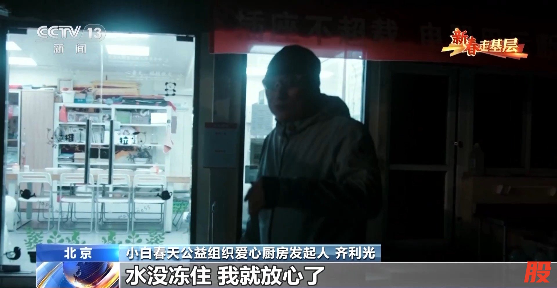 小白春天公益组织爱心厨房发起人 齐利光:每天早晨雷打不动,第一站就是来到小厨房,看到小厨房的灯亮起来了,水没冻住,就放心了,大家一会儿就能喝上热腾腾的爱心粥了。